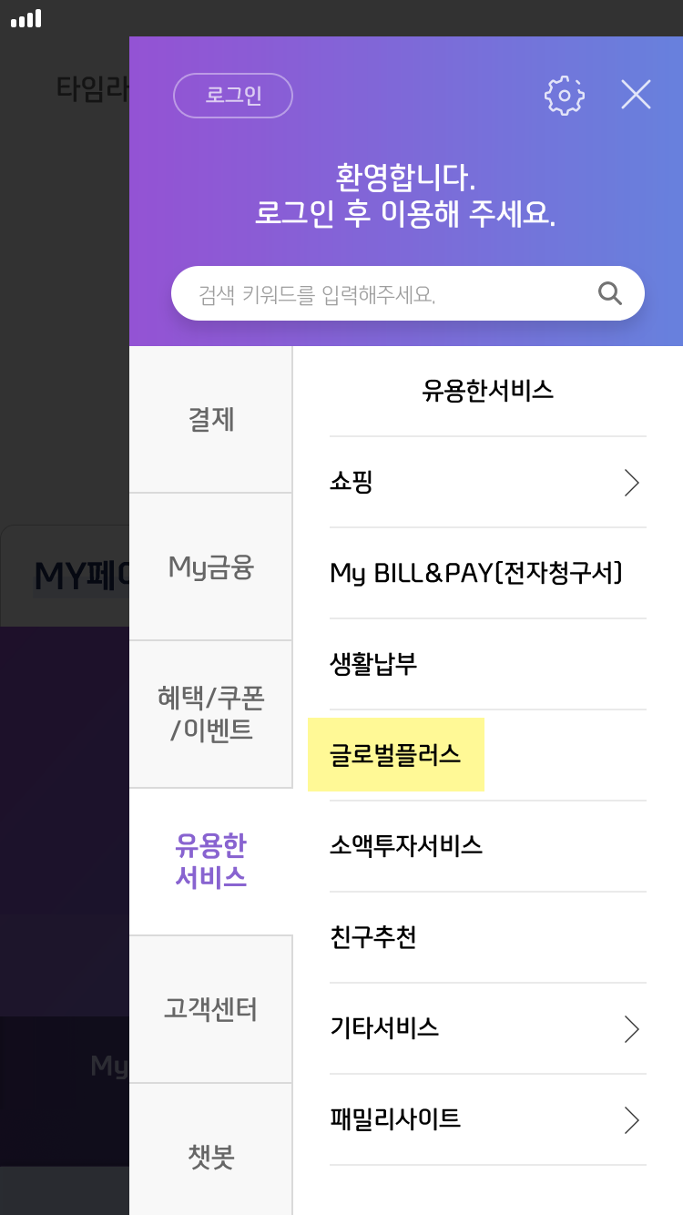 여기서 유용한서비스 > 글로벌플러스로 들어가세요.