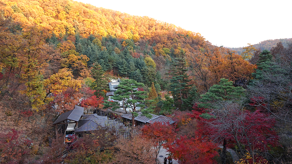 결국 단풍구경을 하기도 전에 도로에서 10분 -> 화담숲 주차장(셔틀버스 X) -> 화담숲 리프트탑 승장(리프트 X) -> 화담숲 입구까지 걸으니 거기서부터 지쳤다. 매표소에서는 또 모노레일이 매진됐다는 소식..... 그래서 화담숲 안에서 또 걸어야 했다. 이럴 줄 알았으면 저 중에서 뭐라도 하나는 타는건데... 후회했다.