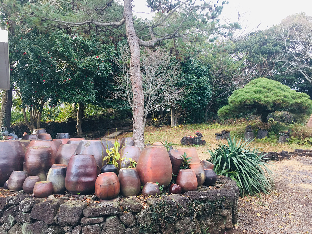 김영갑 갤러리 두모악_입장권 어른 4,500원, 관람시간은 봄/가을, 여름, 겨울이 다른데 겨울은 가장 짧은 5시까지다. 김영갑갤러리는 처음 가봤다. 제주도를 배경으로 한 사진작품이 전시되어있었다. 들어가는 입구는 여름에 봤으면 예뻤을 정원이지만 겨울은 조금 을씨년스러웠다. 정원에 앉아있는 돌하르방을 작품을 보고 나와서 다시보니 작가의 모습같았다.
