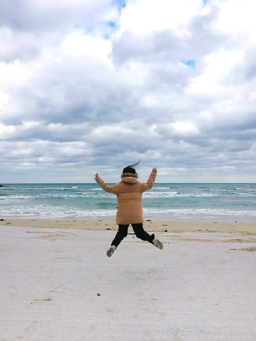 숙소는 에어비앤비로 예약했고, 할인코드(https://www.airbnb.co.kr/c/sorak288)로 32,000원을 할인받았다. 체크인은 오후 4시부터였지만 우리는 다 놀고 밤에 들어가기로 했다. 그래서 우린 체험장에서 딴 감귤을 싣고 함덕해수욕장으로 갔다. 아날로그 감귤밭에서 좀 더 가까운 곽지해변이나 협재해변이 있었지만 이들과는 안 가봤던 함덕으로 갔다. 머 이 겨울에 해수욕을 할 건 아니지만 많은 이들의 로망인 겨울바다(난 아님)를 보러...