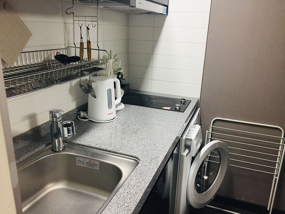 그리고 주방과 냉장고, 세탁기가 있었다. 호텔보다 레지던스가 좋은점이 주방이 있다는 것이다. 제주도 식당은 일찍 닫는 곳이 많기 때문에 숙소에서 먹을 일이 많은데 주방이 있으면 참 편하다. 나는 제주도에 가면 회를 숙소에서 먹는다. 포장해오면 가격도 저렴하고 술과 함께 먹기 좋기 때문에 그렇게 한다. 그런 점을 다 따져 봤을 때 이 곳은 우리의 니즈를 채워주는 최적의 숙소였다.