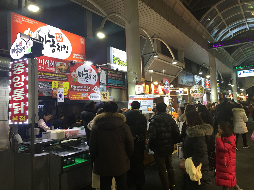 이중섭거리 길 건너에 올래시장은 숙소에서 저녁으로 먹을 음식과 집에 가져갈 귤을 사러 왔다. 저녁은 마농 치킨, 새로나 분식 떡볶이, 제주에서 만든 제주맥주 펠롱 에일이다. 처음에는 여기저기 둘러보다가 집으로 보낼 귤을 샀다. 나는 한라봉을 친구들은 새로 나온 홍매향을 샀는데 홍매향이 아주 달고 맛있다고들 했다. 마농치킨은 대기가 길어서 주문하고 한 시간 뒤에 찾으러 갔고 새로나 분식 떡볶이는 20분 정도 줄을 서서 받아왔다. 올레시장에도 유명한 집은 너무 유명해서 그 가게 주변에 서있기조차 힘들었다. 땅콩만두가 그랬다.