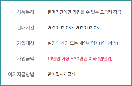 일단 중요한건 오늘 2월 3일부터 2월 5일까지 단 3일 간만 판매하는 적금입니다. 단기간이기 때문에 가입 시작일부터 접속자 수가 급증하는 것 같아요.