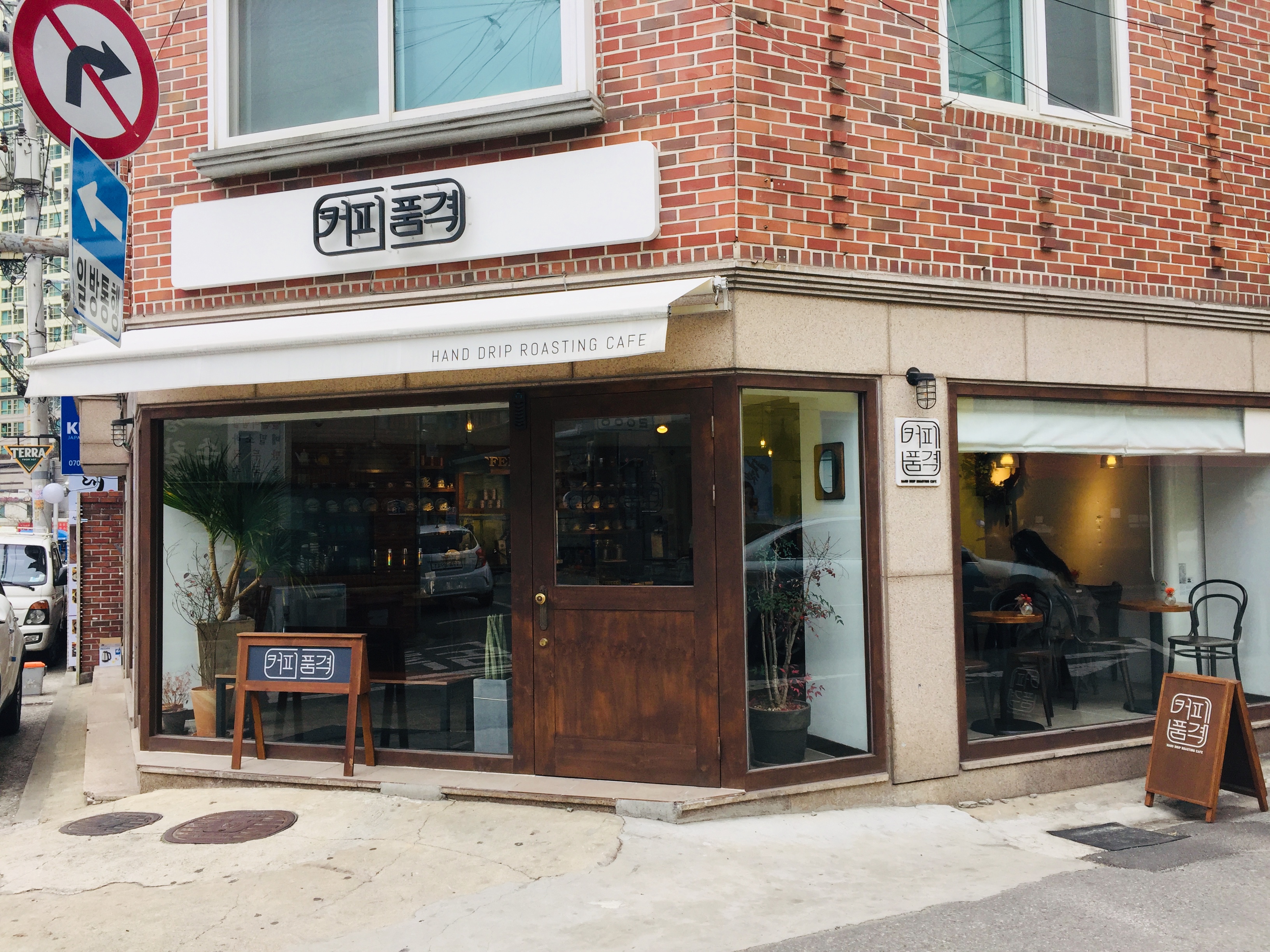 몇몇 개의 재미있는 인테리어의 식당들을 지나 어느 상가주택 1층, 여기는 커피 품격이라는 카페다. 작지만 분위기가 꽤 좋은 동네 카페 느낌이다. 핸드드립 커피를 파는 곳이라고 한다.
