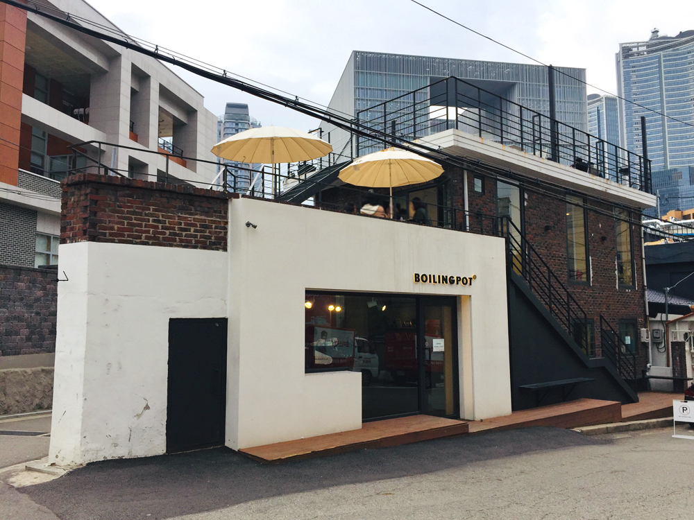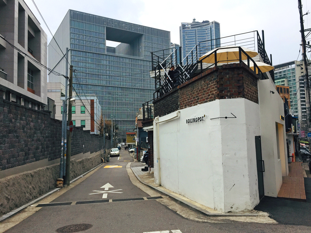 골목으로 들어서면 코너에 가정집을 리모델링해서 만든 카페 보일링팟이 있다. 루프탑에서 아모레 퍼시픽 건물이 보이는데 건물에 불이 켜지는 저녁 즈음 가면 좋을 것 같다는 생각을 했다. 커피맛이 어떨진 모르겠지만 왠지 모르게 맛있을 것 같은 느낌적인 느낌
