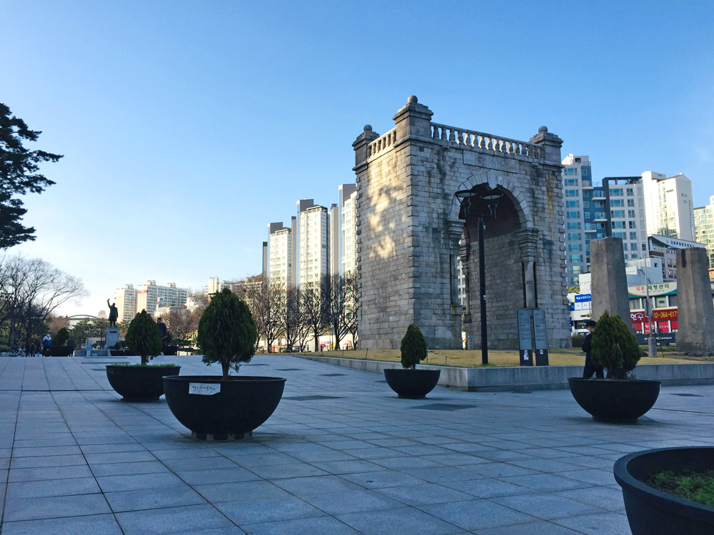공원 초입에는 서울 독립문이 세워져 있다.