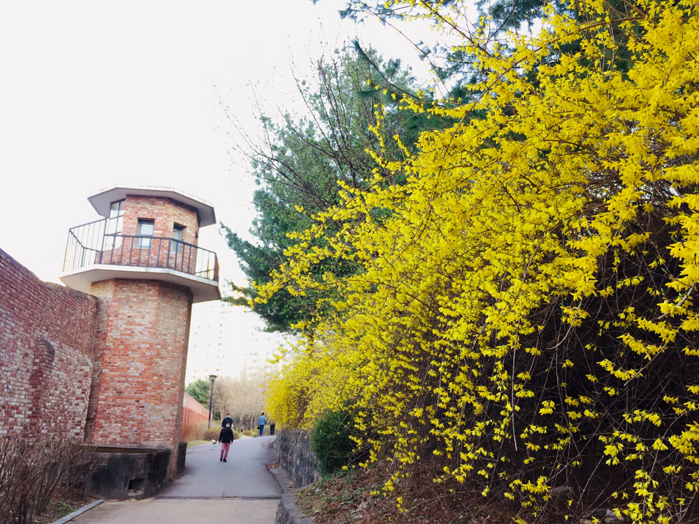 형무소를 돌아 뒤로 가면 여기가 바로 봄밤에서 정해인과 한지민이 걷던 그 장소다. 지금은 다 지고 없겠지만 개나리가 너무 예쁘게 피어서 걸으면서 좋았다. 공원 한 바퀴 도는데 빨리 걸으면 15분? 도 안 걸리지만 여기저기 구경하면서 걷느라 30분 넘게 걸린 것 같다. 요즘 집에만 있어서 운동 매우 부족이었는데 오랜만에 걸음수를 올려서 뿌듯했다.