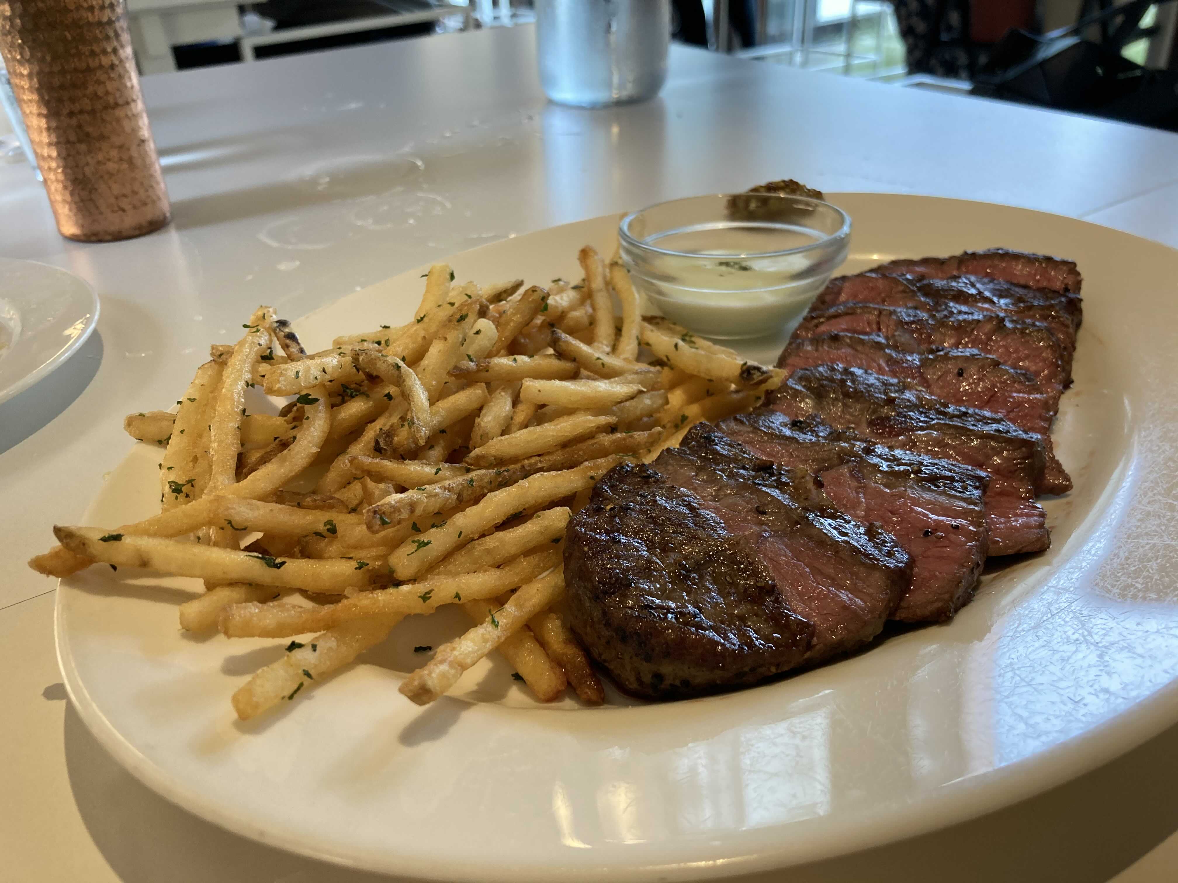 주문시 1인 1메뉴가 필수다. 우리는 부채살 스테이크, 봉골레 파스타, 훈제~수란을 시키고 음료로 와인을 시켰다. 이 친구들과 다니면서 좋아지게 된 스테이크와 와인. 이날 여기서 더 좋아지게 됐다.