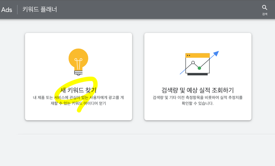 7. 키워드 플래너에 들어오면 새 키워드 찾기가 보입니다. 클릭해주세요.