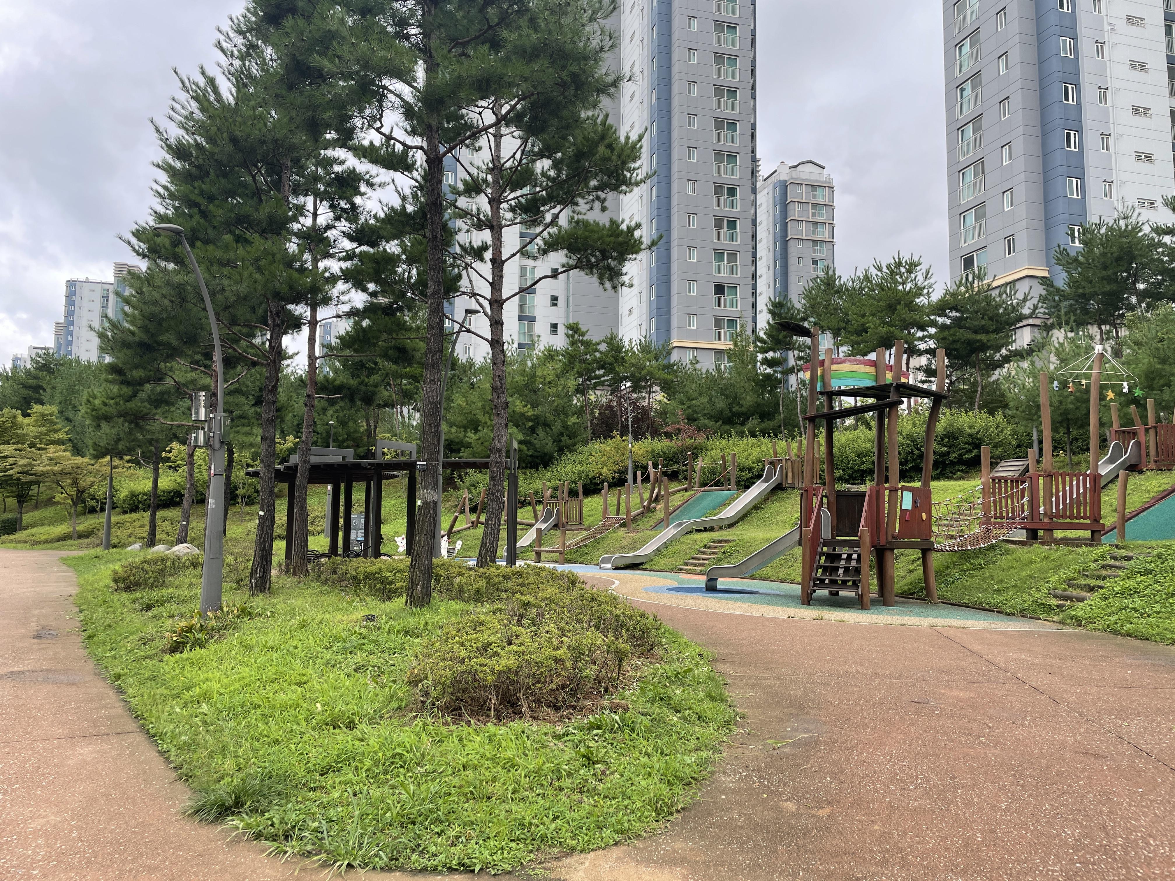 넓은 공원에는 놀이터 시설도 널찍하게 자리 잡고 있다. 미끄럼틀 규모가 작은 공원이나 아파트 단지에서는 볼 수 없는 크기이다.