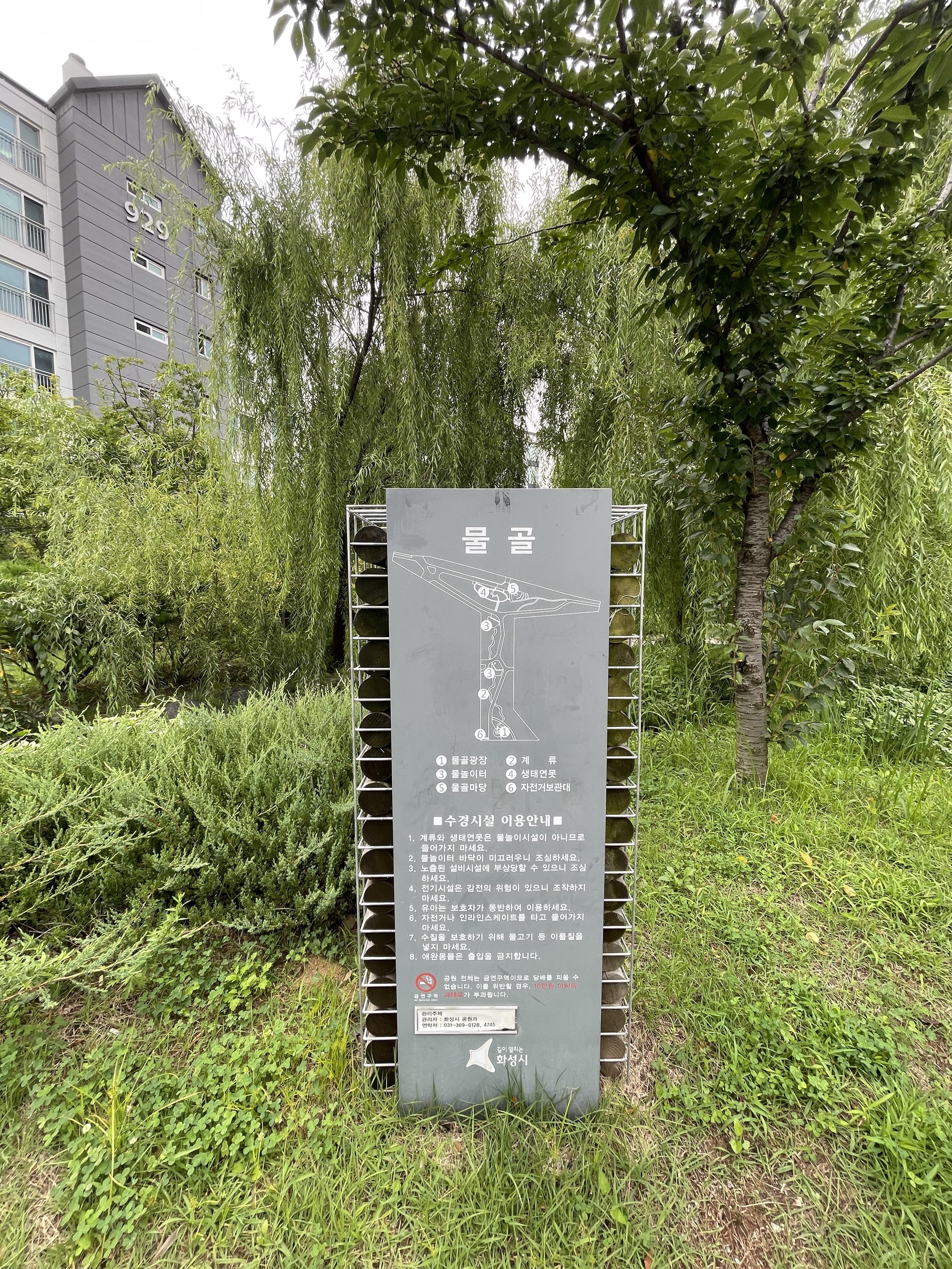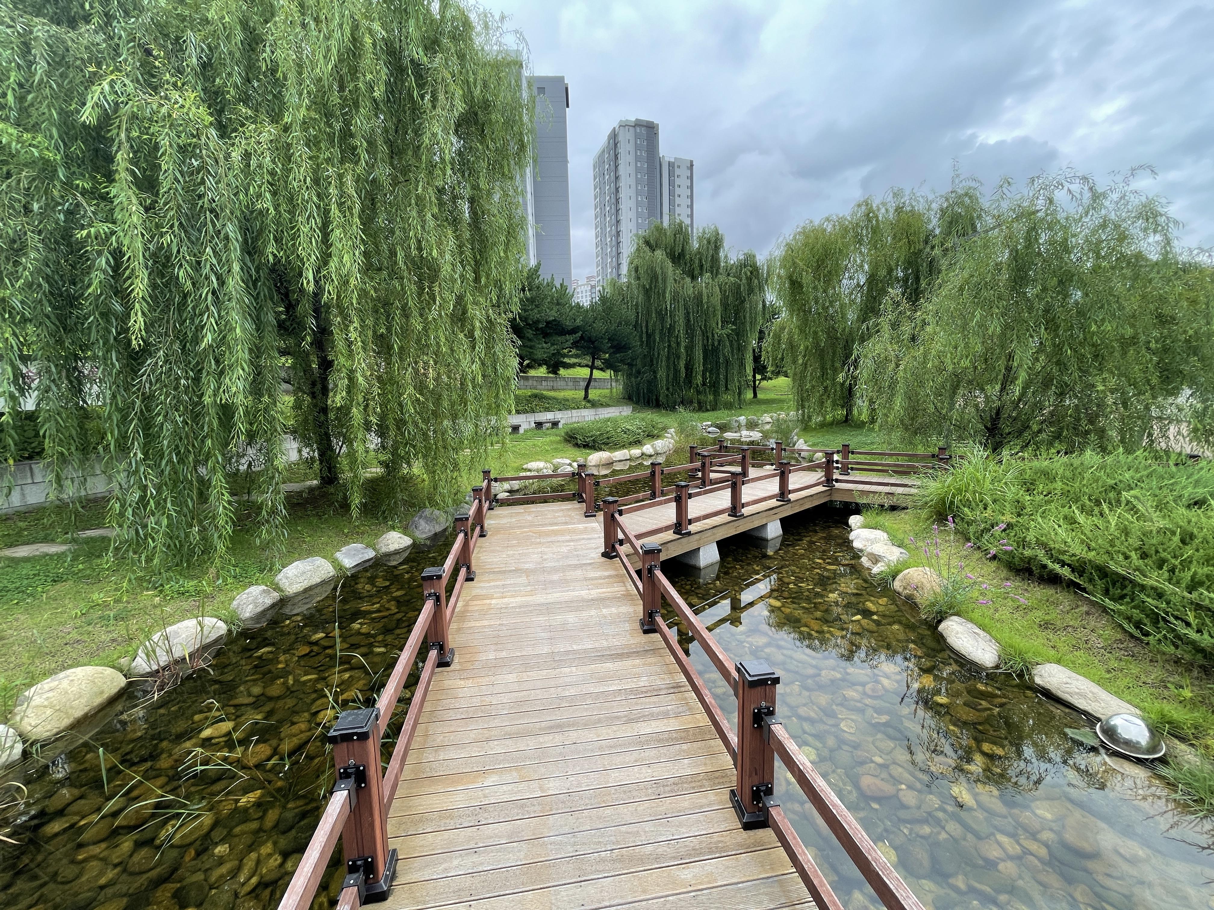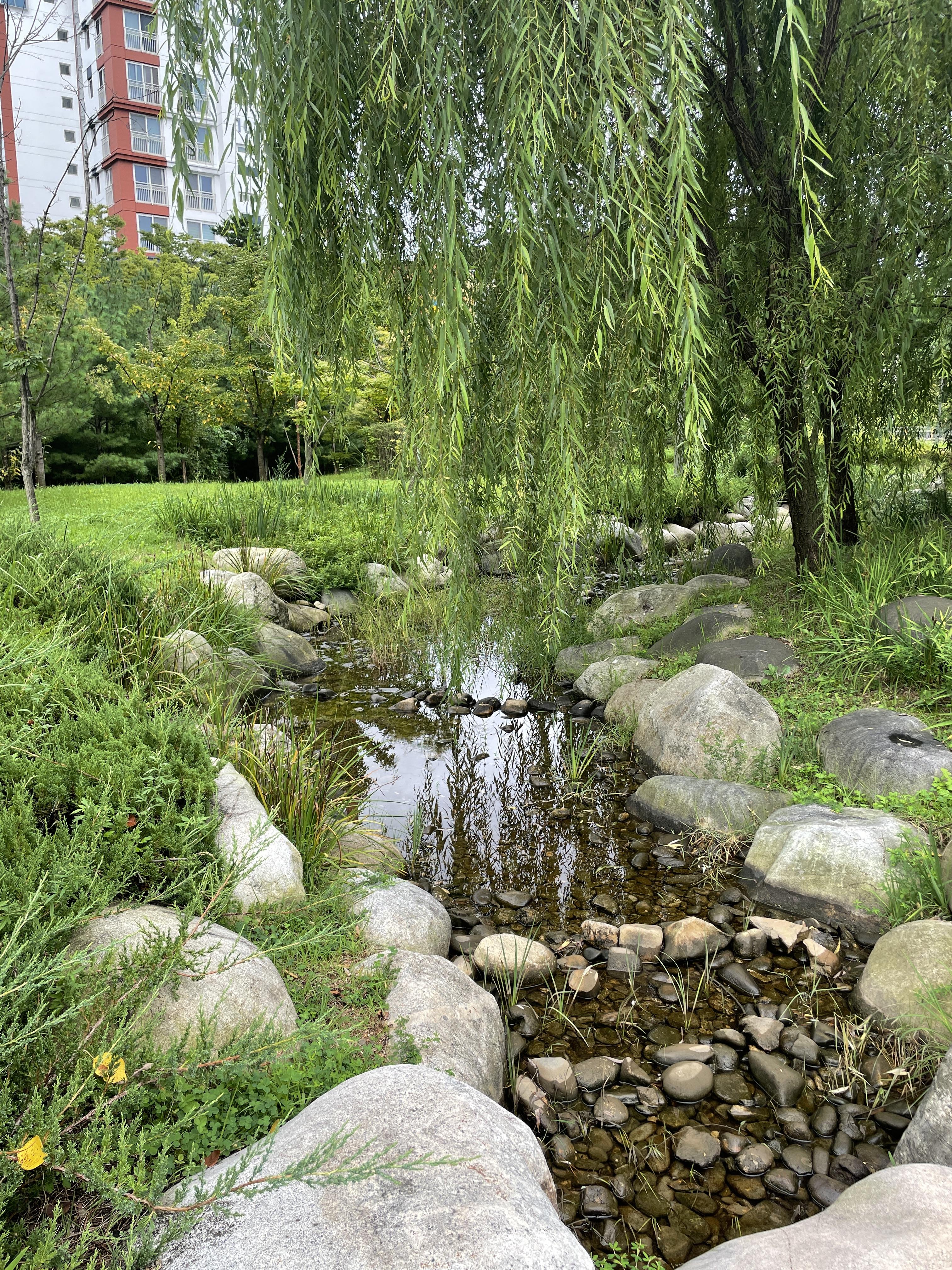 물골이라는 곳은 시골 개울가를 연상하게 하는 곳으로 만들어졌어요. 여기도 참 좋았어요. 버드나무가 늘어진 모습이 멋있더라고요. 여름에 아이스커피 한잔 가지고 여기 나무 밑에 앉아 있으면 바캉스가 따로 없을 것 같네요.